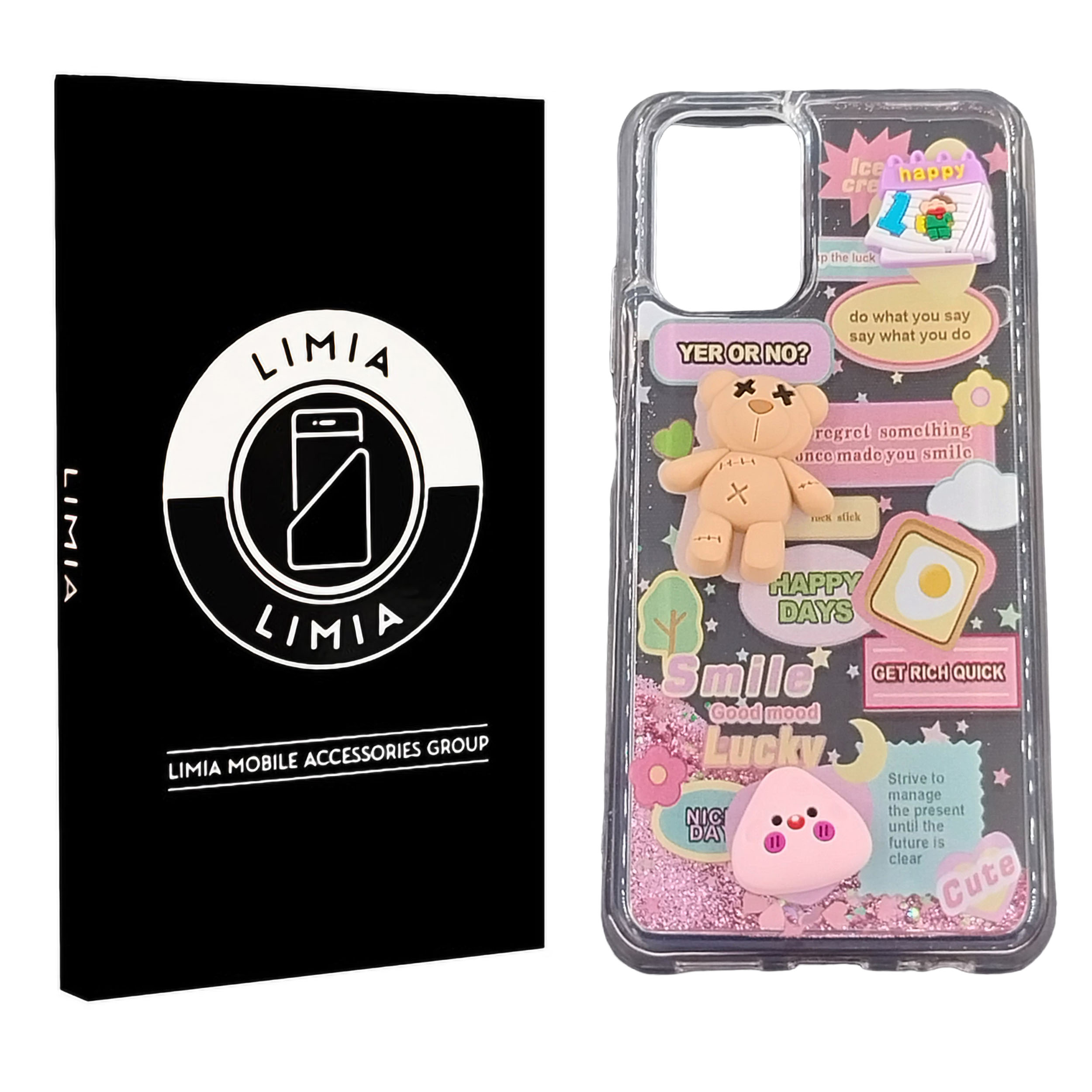 قاب آکواریومی دو لایه است که باعث می شود مقاومت این قاب گوشی دخترانه در برابر ضربه چندین برابر شود. بین این دو لایه خلأ بوده، در نتیجه اکلیل ها و پولک های جذاب و پر زرق و برق به همراه روغن مایع سفید، با جابجا کردن و چرخاندن گوشی شناور می شوند و جلوه ای بسیار جذاب و خیره کننده به وجود می‌آورند که حتی سرگرم کننده نیز است.